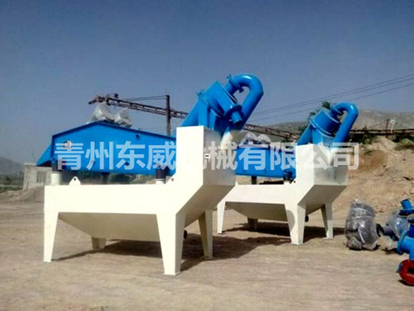 目前現(xiàn)有的洗沙生產(chǎn)線上,絕大部分采用濕法生產(chǎn)工藝,不論采用何種形式的洗砂機(jī),其缺點(diǎn)就是細(xì)沙流失嚴(yán)重,嚴(yán)重影響沙子的級(jí)配,造成級(jí)配不合理,細(xì)度模數(shù)偏粗,大大降低了機(jī)制砂的產(chǎn)品質(zhì)量。過(guò)多的細(xì)沙排放,還會(huì)造成環(huán)境污染。為解決上述問(wèn)題,青州東威機(jī)械技術(shù)部門潛心研發(fā)了細(xì)沙回收機(jī)(細(xì)砂回收機(jī)),該細(xì)沙回收系統(tǒng)吸收國(guó)外先進(jìn)技術(shù),結(jié)合本土砂粉實(shí)際情況而設(shè)計(jì)的細(xì)沙回收設(shè)備。細(xì)沙回收機(jī)廣泛應(yīng)用于洗沙場(chǎng)、砂石骨料加工系統(tǒng)、玻璃原材料加工系統(tǒng)、人工制沙生產(chǎn)線、選煤廠粗煤泥的回收以及環(huán)保工程(泥漿凈化)等,可有效解決細(xì)沙回收問(wèn)題。