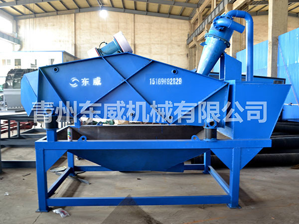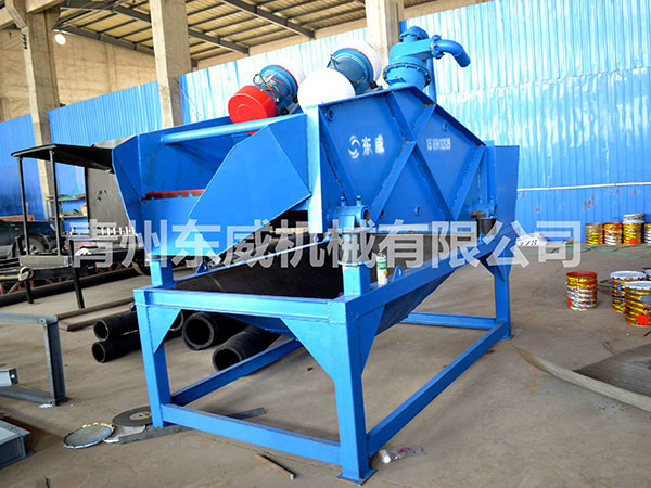 目前現(xiàn)有的洗沙生產(chǎn)線(xiàn)上,絕大部分采用濕法生產(chǎn)工藝,不論采用何種形式的洗砂機(jī),其大的缺點(diǎn)就是細(xì)沙流失嚴(yán)重,嚴(yán)重影響沙子的級(jí)配,造成級(jí)配不合理,細(xì)度模數(shù)偏粗,大大降低了機(jī)制砂的產(chǎn)品質(zhì)量。過(guò)多的細(xì)沙排放,還會(huì)造成環(huán)境污染。為解決上述問(wèn)題,青州東威機(jī)械技術(shù)部門(mén)潛心研發(fā)了細(xì)沙回收機(jī)(細(xì)砂回收機(jī)),該細(xì)沙回收系統(tǒng)吸收國(guó)外先進(jìn)技術(shù),結(jié)合本土砂粉實(shí)際情況而設(shè)計(jì)的細(xì)沙回收設(shè)備。細(xì)沙回收機(jī)廣泛應(yīng)用于洗沙場(chǎng)、砂石骨料加工系統(tǒng)、玻璃原材料加工系統(tǒng)、人工制沙生產(chǎn)線(xiàn)、選煤廠(chǎng)粗煤泥的回收以及環(huán)保工程(泥漿凈化)等,可有效解決細(xì)沙回收問(wèn)題。