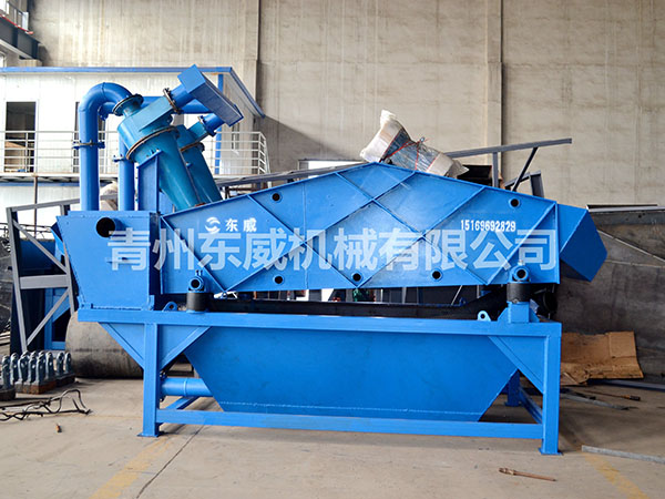 目前現(xiàn)有的洗沙生產線上,絕大部分采用濕法生產工藝,不論采用何種形式的洗砂機,其大的缺點就是細沙流失嚴重,嚴重影響沙子的級配,造成級配不合理,細度模數偏粗,大大降低了機制砂的產品質量。過多的細沙排放,還會造成環(huán)境污染。為解決上述問題,青州東威機械技術部門潛心研發(fā)了細沙回收機(細砂回收機),該細沙回收系統(tǒng)吸收國外先進技術,結合本土砂粉實際情況而設計的細沙回收設備。細沙回收機廣泛應用于洗沙場、砂石骨料加工系統(tǒng)、玻璃原材料加工系統(tǒng)、人工制沙生產線、選煤廠粗煤泥的回收以及環(huán)保工程(泥漿凈化)等,可有效解決細沙回收問題。