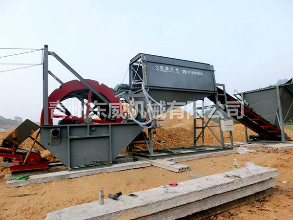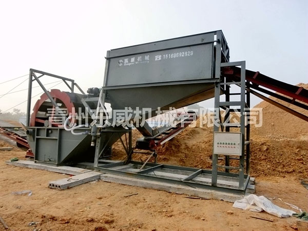 篩沙洗沙一體機(jī)采用更緊湊的結(jié)構(gòu),把整套設(shè)備集成于一個框架內(nèi),由料倉、上料輸送機(jī)、滾筒篩、廢料輸送機(jī)、輪式洗沙機(jī)、成品料輸送機(jī)等等部分組成,可一次性完成砂石料洗選作業(yè)。設(shè)備總功率約42kw,用水量60-80m3/小時,每小時工作量60-80m3,適用于機(jī)制砂、河沙、石粉的篩分洗選作業(yè)。