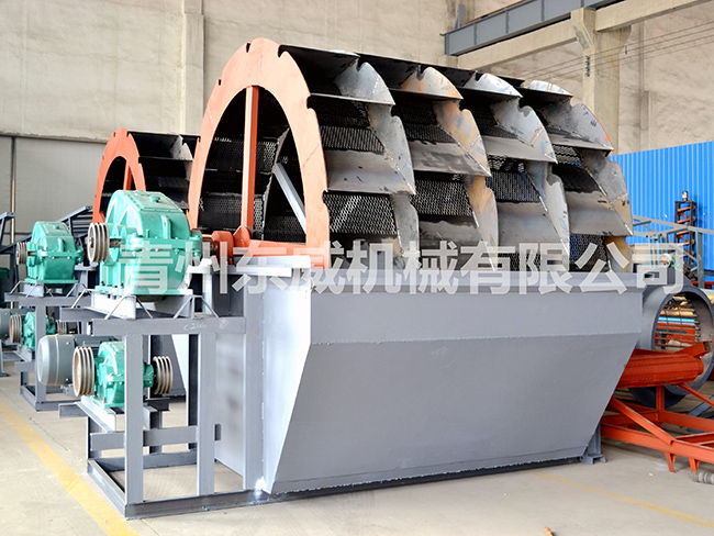 海沙淡化沖洗機(jī)的工作原理如同一臺(tái)滾筒式洗衣機(jī),滾筒內(nèi)設(shè)置螺旋葉片和抓斗,確保進(jìn)料、出料自動(dòng)完成;滾筒旋轉(zhuǎn)攪拌,供水系統(tǒng)連續(xù)不斷注入淡水,對(duì)海砂進(jìn)行反復(fù)沖洗,使含鹽水不斷地從洗沙機(jī)溢水口溢出,完成去鹽工作。