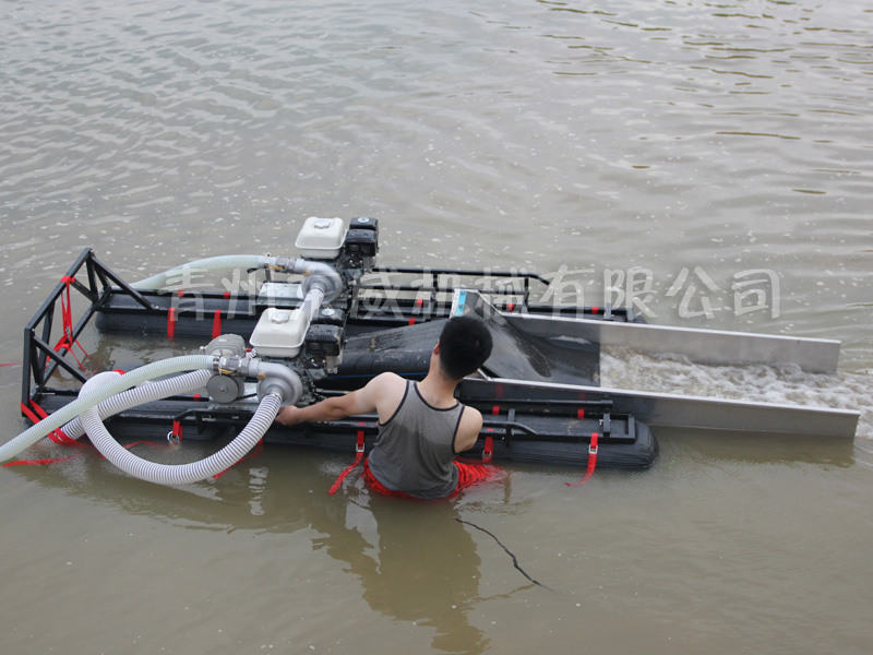 該設備抽沙系統(tǒng)采用新型結構,原料抽取過程中物料不流經(jīng)泵組,不用考慮泵和葉輪的磨損;沙金重選裝置為我公司專門研發(fā)的橡膠選金墊,沙金提取效率高,可對毛細金、片狀金進行回收;適用于中小型礦場、河道、小溪淘金、探礦作業(yè);