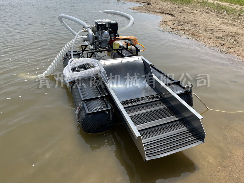 虹吸式淘金船是由機(jī)器、高壓水泵、浮體、射流嘴、管路、選礦溜槽等構(gòu)成,具有體積小、輕量化、便于拆裝運(yùn)輸?shù)忍攸c(diǎn),是沙金采選行業(yè)內(nèi)投資少、見效快的新選擇;可選裝空壓機(jī)系統(tǒng),潛入水下進(jìn)行探礦、選礦操作。