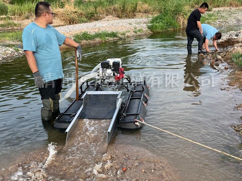 該設(shè)備抽沙系統(tǒng)采用新型結(jié)構(gòu),原料抽取過程中物料不流經(jīng)泵組,不用考慮泵和葉輪的磨損;沙金重選裝置為我公司專門研發(fā)的橡膠選金墊,沙金提取效率高,可對毛細(xì)金、片狀金進(jìn)行回收;適用于中小型礦場、河道、小溪淘金、探礦作業(yè);