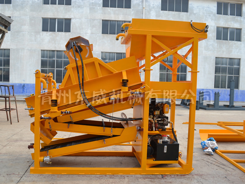 振動式選金機是一個緊湊型、可移動的整體結(jié)構(gòu)。頂部為篩條部分,可以將大塊物料隔除,同時物料落入二次篩分機構(gòu),充分篩分后,高壓力水將沙子沖入溜槽選金。該選金機結(jié)構(gòu)金緊湊、操作簡單、低運行成本。明顯比市場上其它選金設備有優(yōu)勢,無需豐富的選金經(jīng)驗即可操作。