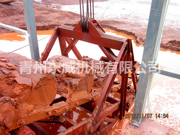 該設(shè)備為分體、鏈斗式挖掘機(jī)械,浮體采用橫骨架式分體箱形結(jié)構(gòu),裝有定位錨設(shè)備、鏈斗挖掘裝置、橋架升降裝置、物料攪拌裝置、物料輸送泵組等。水下桿是由安裝在浮體上的絞車實(shí)現(xiàn)升降,物料通過(guò)鏈斗裝置挖掘上來(lái)進(jìn)入攪拌機(jī)充分?jǐn)嚢韬笥迷鼭{泵輸送到指定區(qū)域。