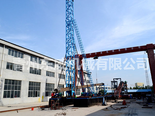 鉆探式抽沙船采用分體式結(jié)構(gòu),主機(jī)艙及側(cè)浮體可拆分為三部分,方便運(yùn)輸,工作時(shí)利用水下鉆桿的重力,將旋轉(zhuǎn)的鉆頭鉆入泥層下抽沙,抽沙的同時(shí)不破壞泥層,減少沙子泥含量。