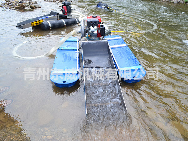 微型淘金船,又叫虹吸式淘金船,體積小重量輕,便于拆裝、運輸、攜帶、操作,投資少見益快;