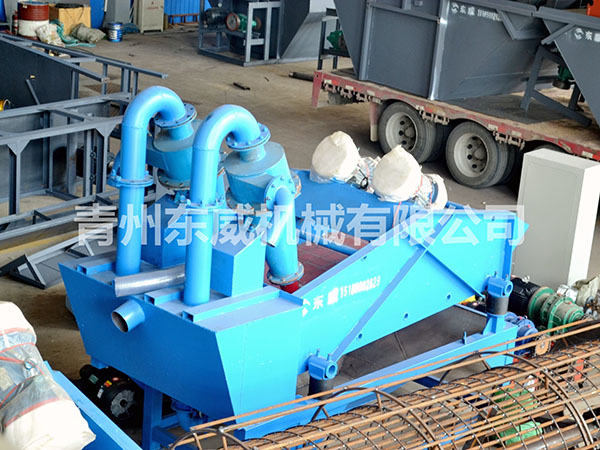 目前現(xiàn)有的洗沙生產(chǎn)線上,絕大部分采用濕法生產(chǎn)工藝,不論采用何種形式的洗砂機(jī),其大的缺點(diǎn)就是細(xì)沙流失嚴(yán)重,嚴(yán)重影響沙子的級(jí)配,造成級(jí)配不合理,細(xì)度模數(shù)偏粗,大大降低了機(jī)制砂的產(chǎn)品質(zhì)量。過(guò)多的細(xì)沙排放,還會(huì)造成環(huán)境污染。為解決上述問(wèn)題,青州東威機(jī)械技術(shù)部門(mén)潛心研發(fā)了細(xì)沙回收機(jī)(細(xì)砂回收機(jī)),該細(xì)沙回收系統(tǒng)吸收國(guó)外先進(jìn)技術(shù),結(jié)合本土砂粉實(shí)際情況而設(shè)計(jì)的細(xì)沙回收設(shè)備。細(xì)沙回收機(jī)廣泛應(yīng)用于洗沙場(chǎng)、砂石骨料加工系統(tǒng)、玻璃原材料加工系統(tǒng)、人工制沙生產(chǎn)線、選煤廠粗煤泥的回收以及環(huán)保工程(泥漿凈化)等,可有效解決細(xì)沙回收問(wèn)題。